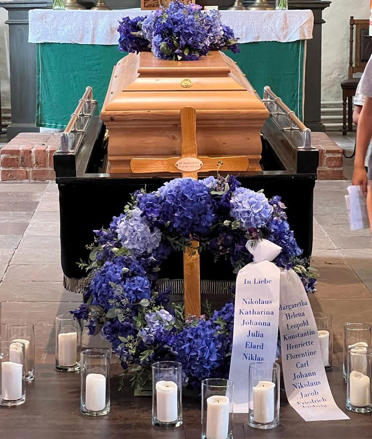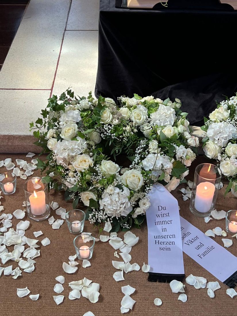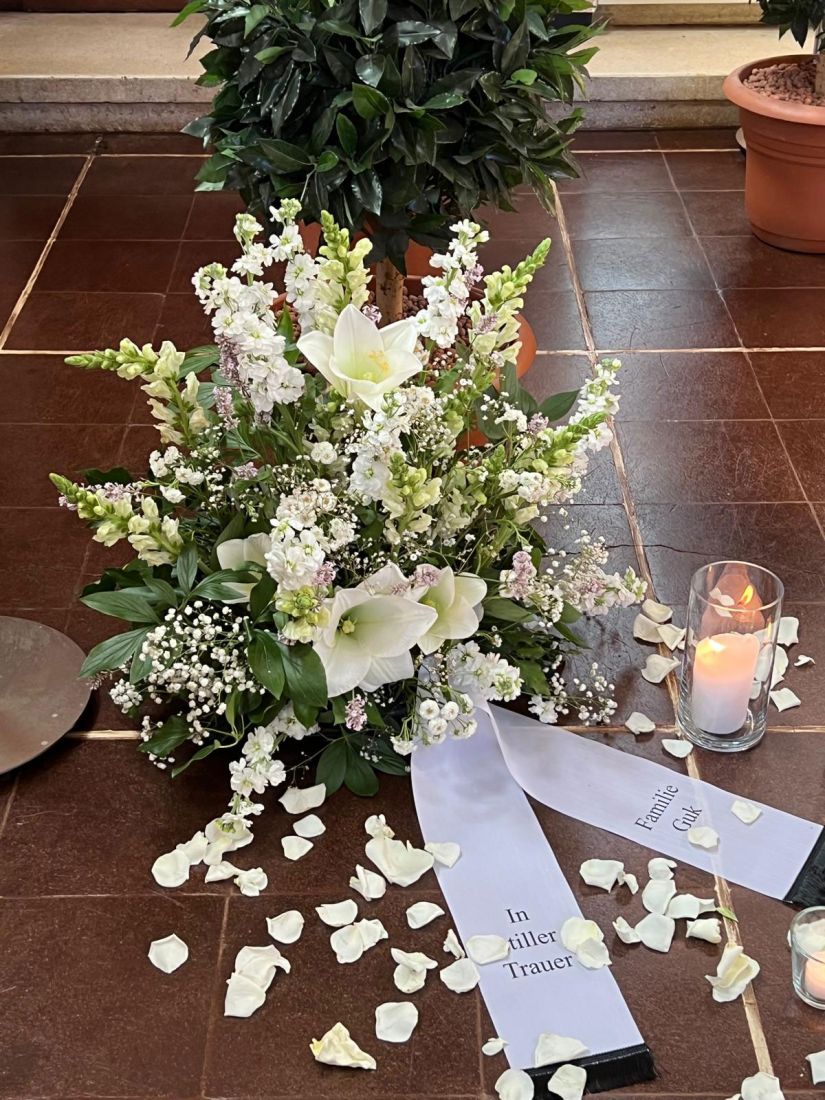 Um Ihren Gefühlen den richtigen Ausdruck zu verleihen, fertigen wir Ihren individuellen Trauerschmuck an. Mit Bedacht und Sorgfalt arrangieren wir Ihre Trauerfloristik. Zur Trauerfloristik gehören neben der Gestaltung des Sarges und der Trauerhallen auch die florale Dekoration von Urnen sowie von Trauerkränzen und Trauerschalen.